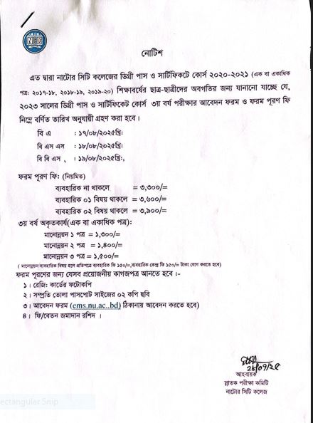 ২০২৩ সালের ডিগ্রী পাস ও সার্টিফিকেট কোর্স ৩য় বর্ষ পরীক্ষার ফরম পূরণের বিজ্ঞপ্তি